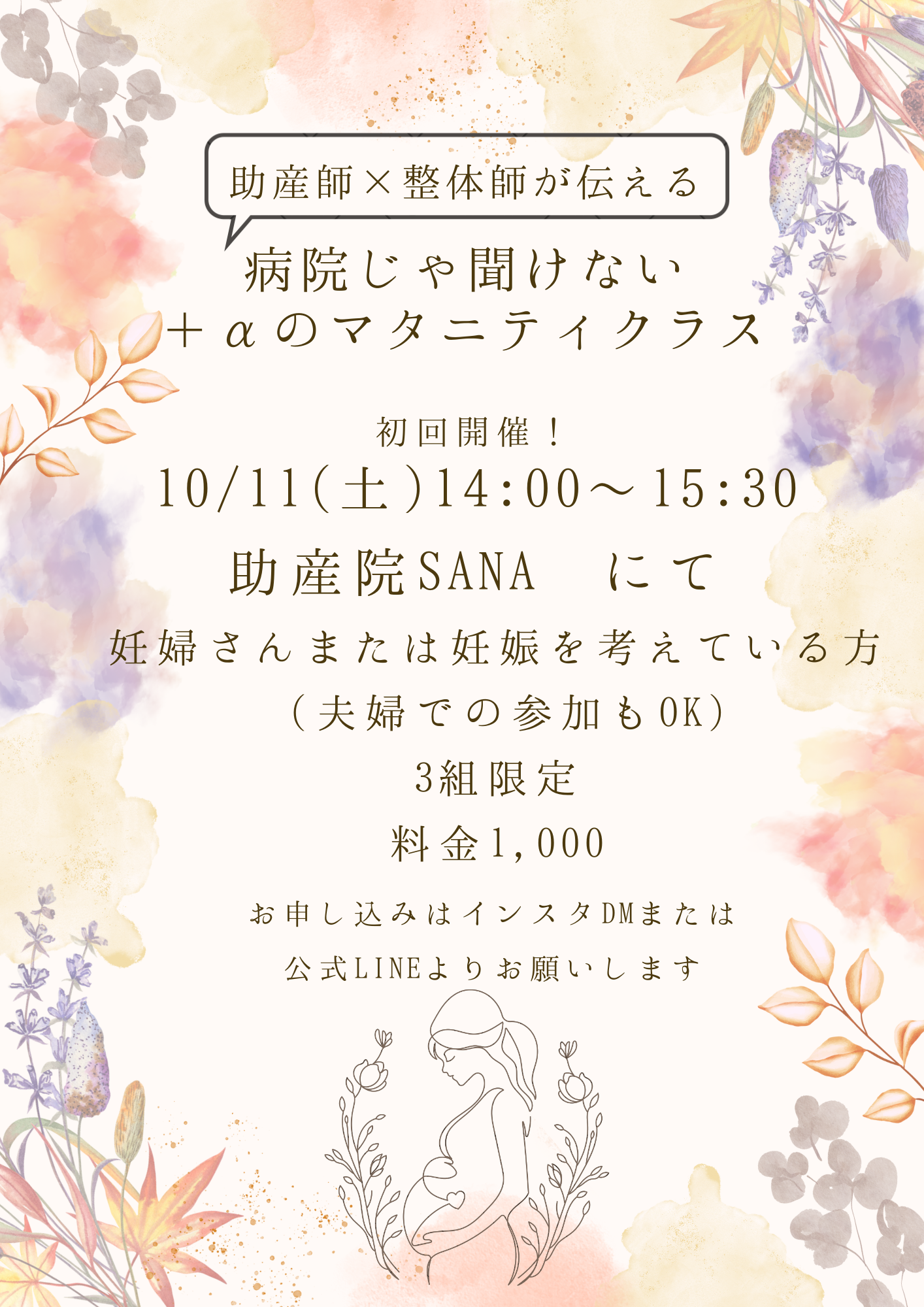 助産師×整体師がお伝えする「病院ではなかなか聞けない、+αのマタニティクラス」を開催してみようと思います。